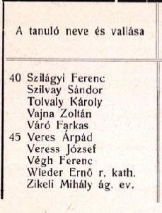 Véndiákok névsora