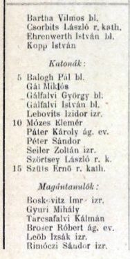 Véndiákok névsora