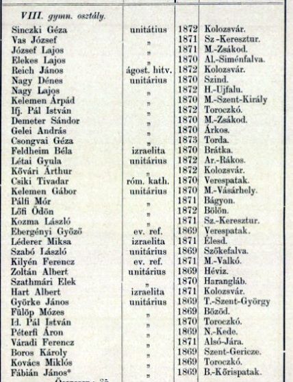 János Zsigmond Unitárius Kollégium egykori diákjai 1880 12A