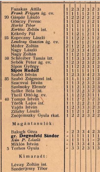 Véndiákok névsora