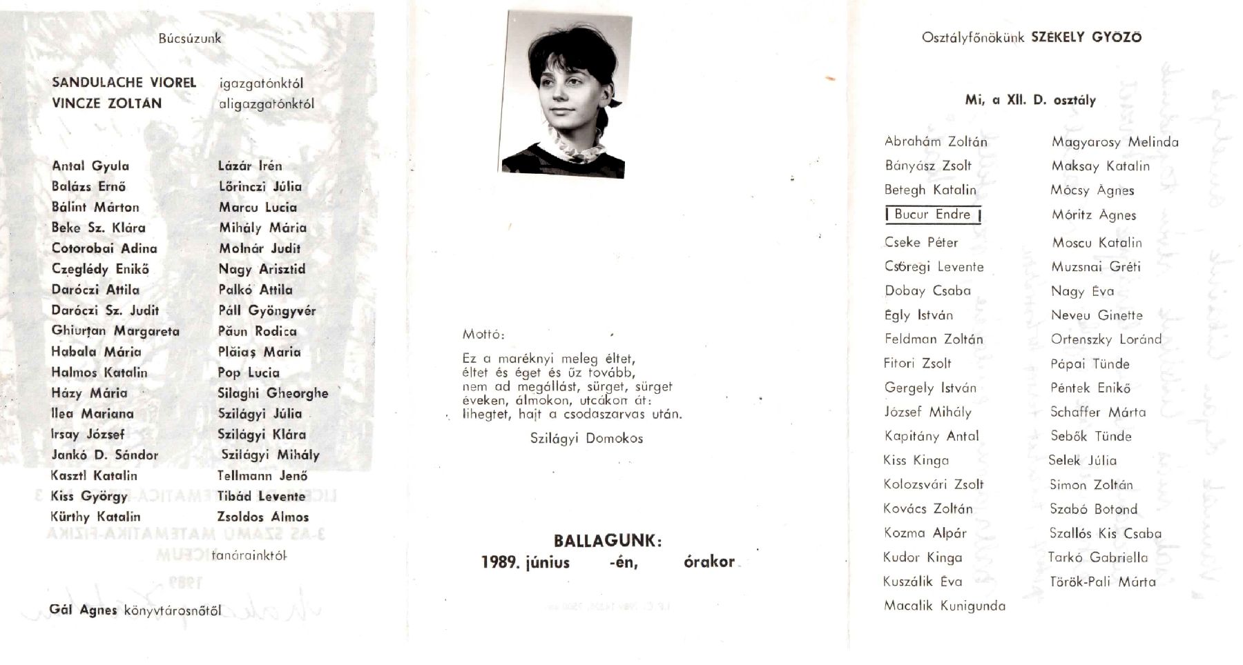 Báthory István Elméleti Líceum egykori diákjai 1989 12D