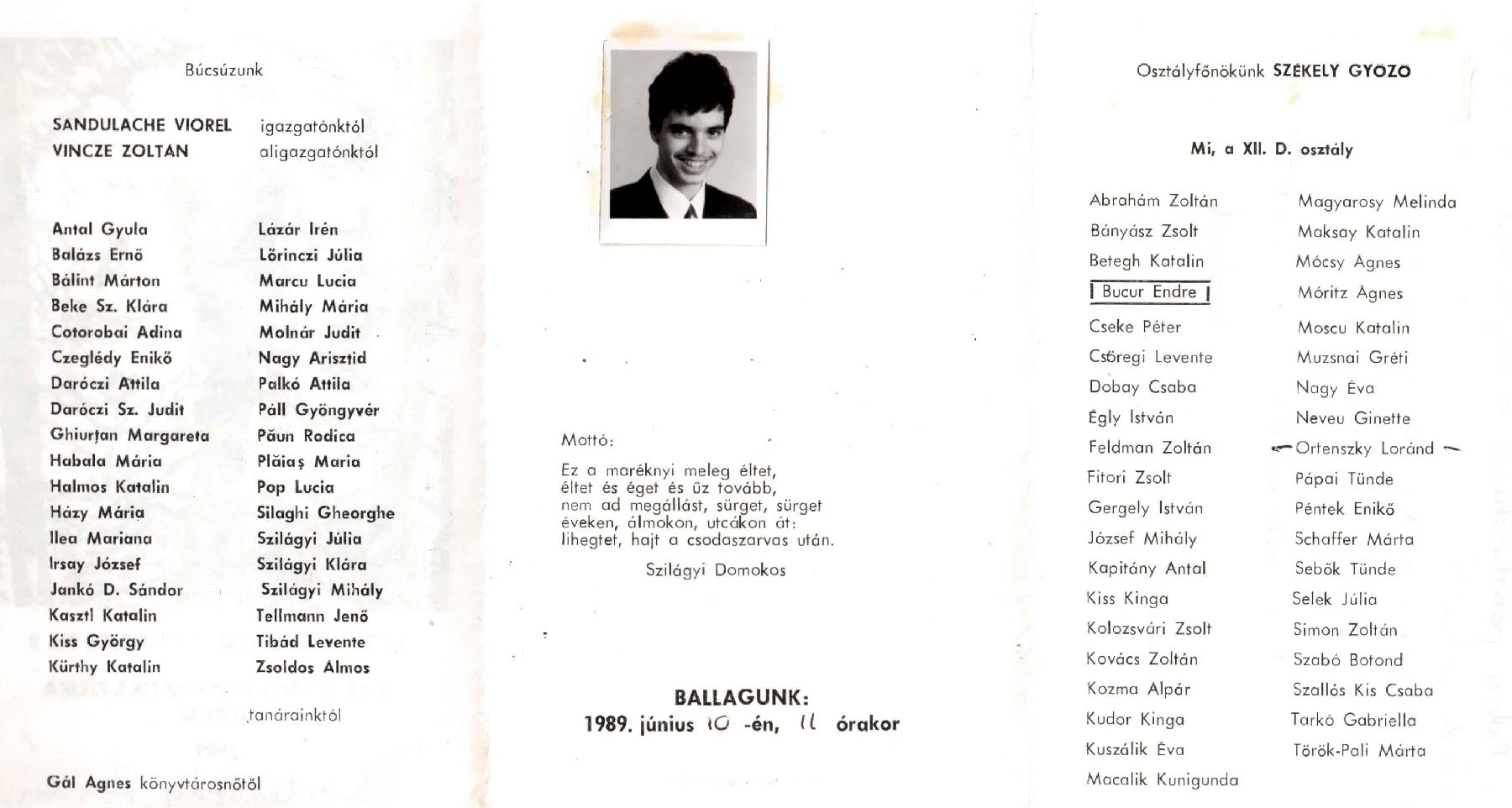 Báthory István Elméleti Líceum egykori diákjai 1989 12D
