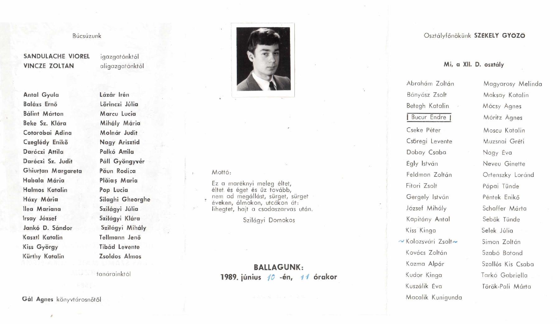 Báthory István Elméleti Líceum egykori diákjai 1989 12D