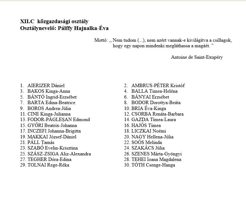 Véndiákok névsora