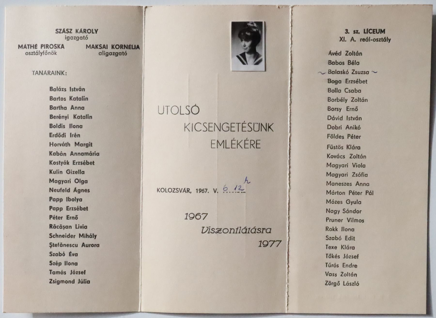 Apáczai Csere János Elméleti Líceum egykori diákjai 1967 11A