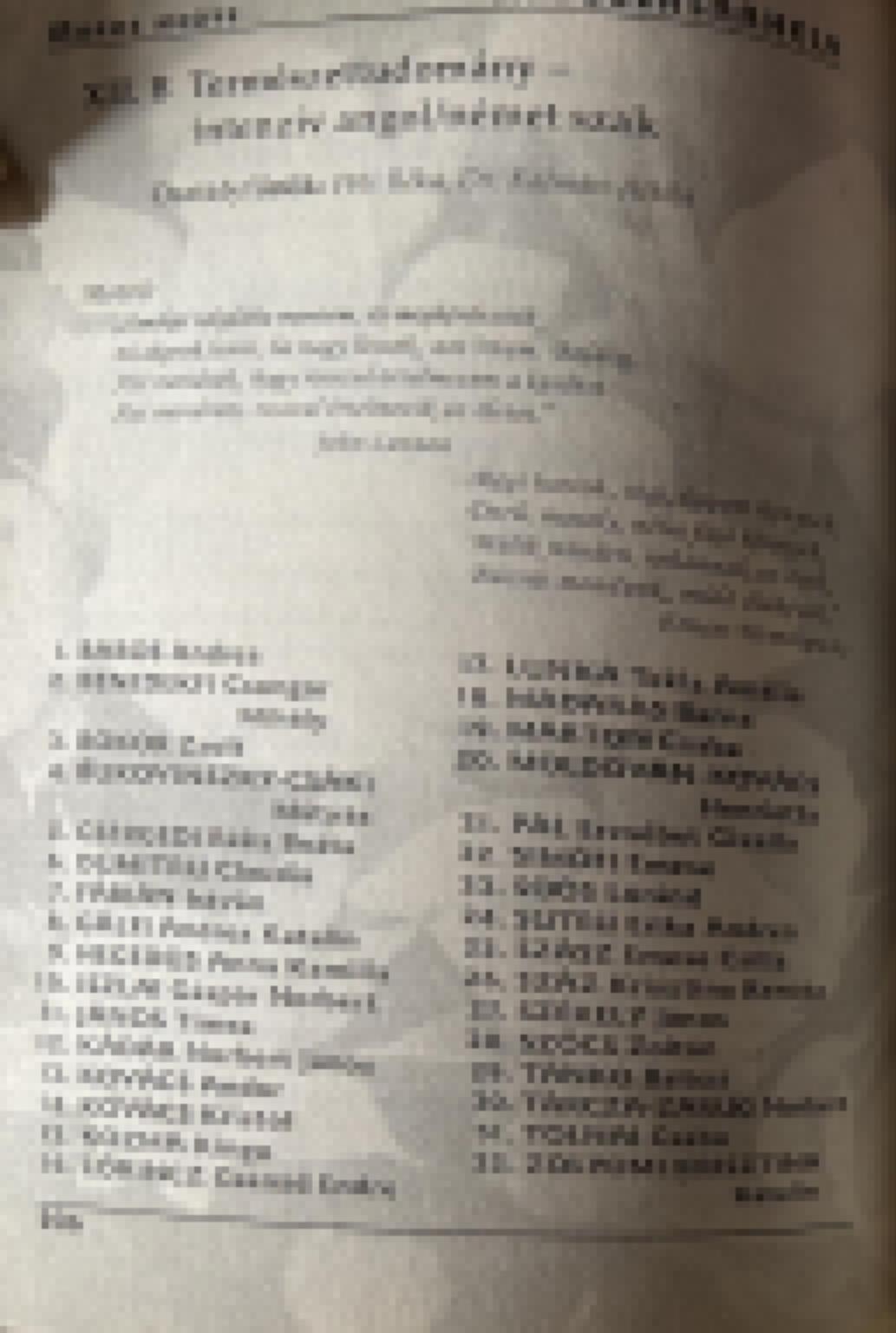 Véndiákok névsora