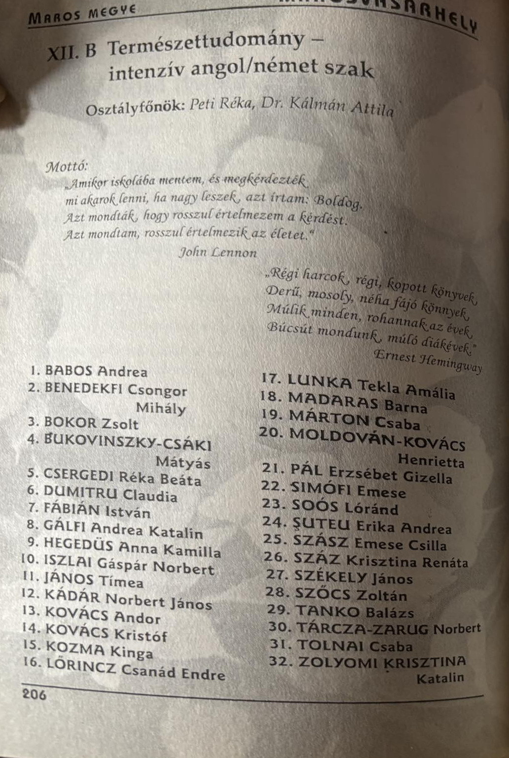 egykori diákjai