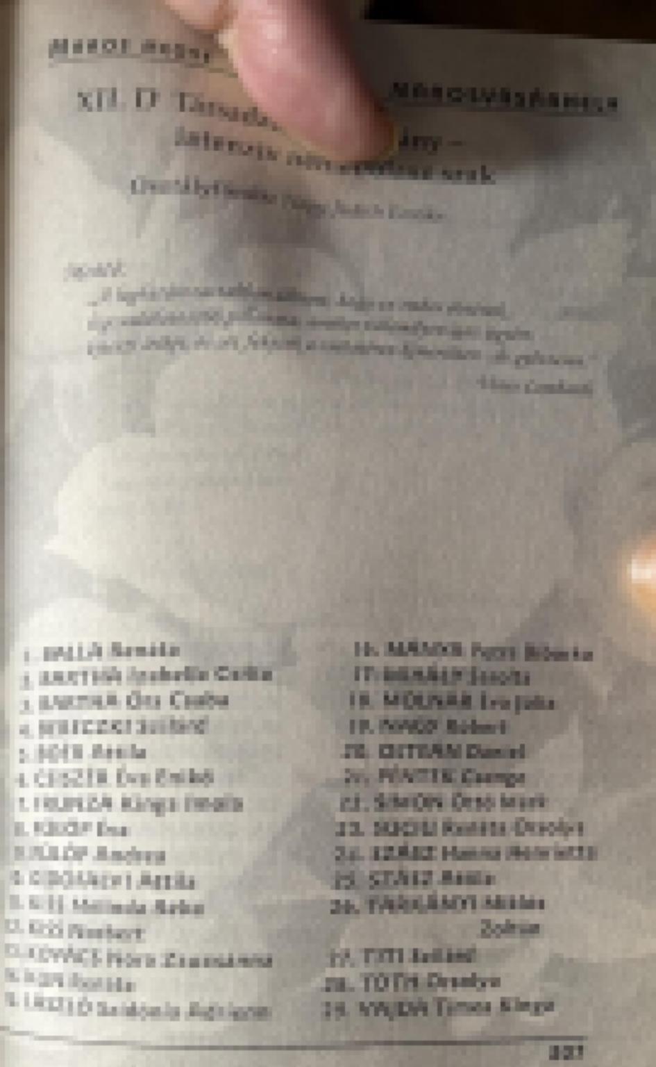 Véndiákok névsora