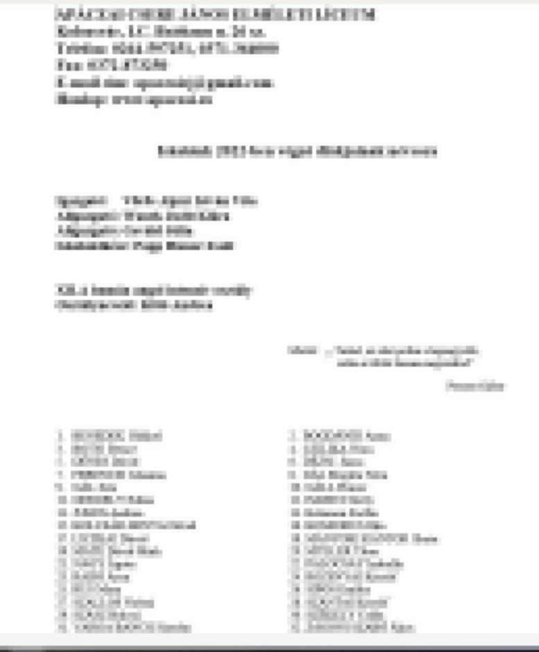 Véndiákok névsora