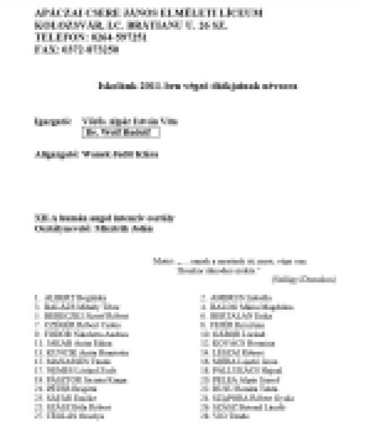 Véndiákok névsora