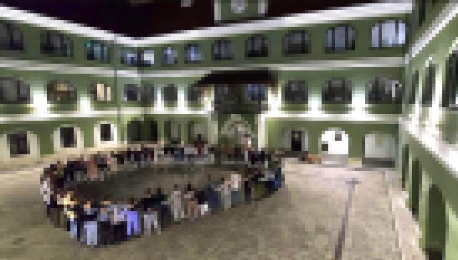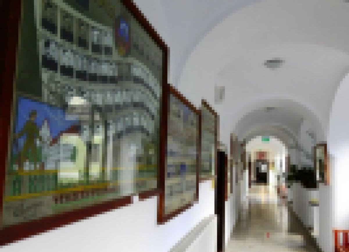 Kollégiumi folyosó az elmúlt évtizedek végzőseinek tablóival