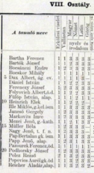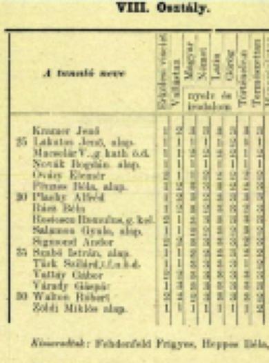 Véndiákok névsora