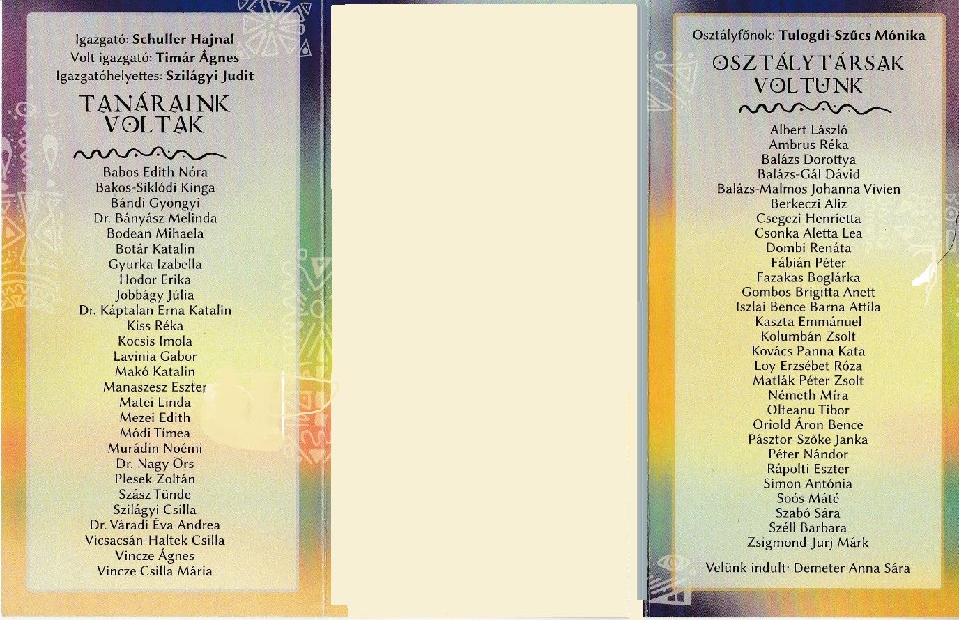 Véndiákok névsora