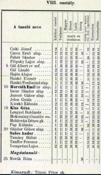 Véndiákok névsora