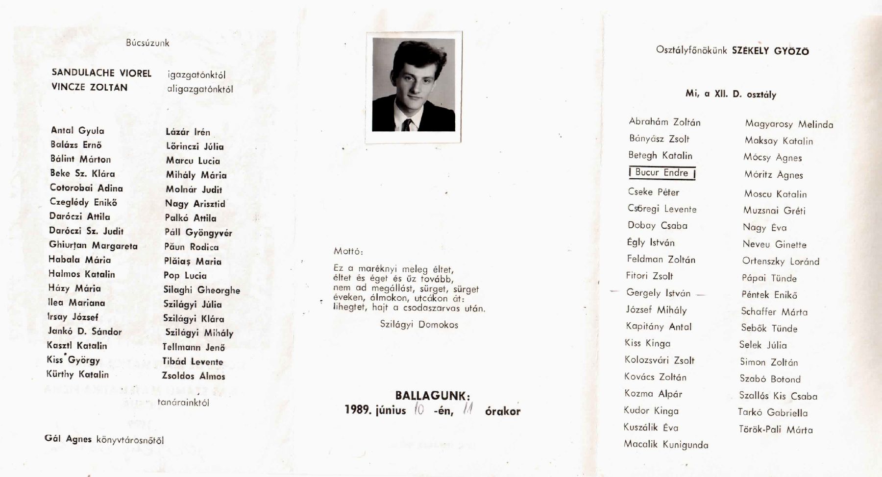 Báthory István Elméleti Líceum egykori diákjai 1989 12D