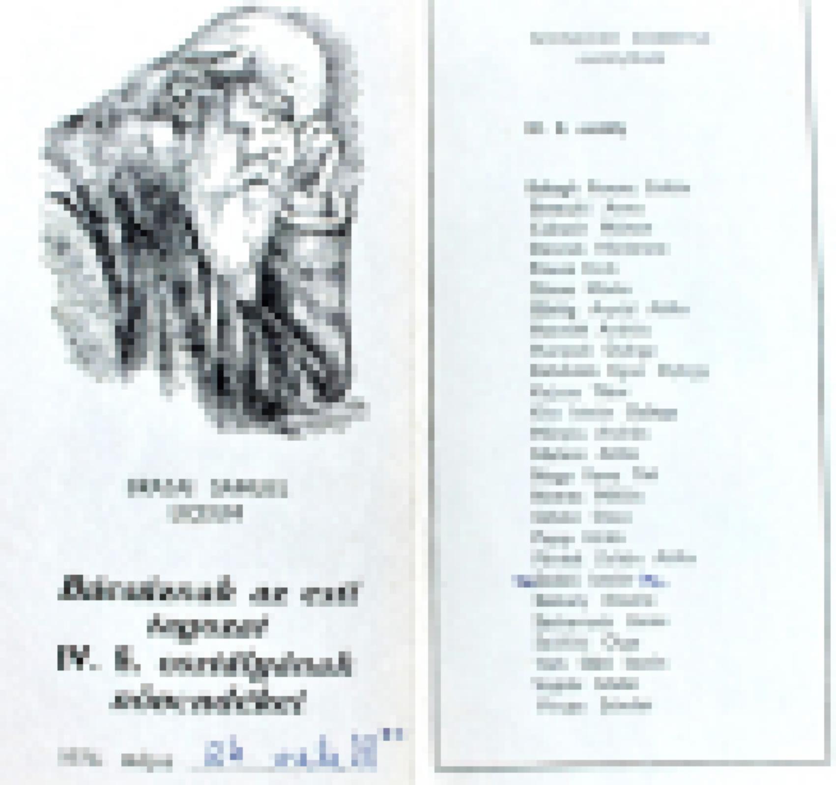 Brassai Sámuel és a diákok névsora