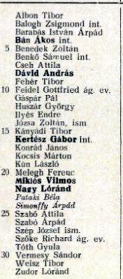 Véndiákok névsora